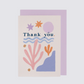 Thank you card with Matisse inspired abstract shapes and 'thank you' hand lettering.