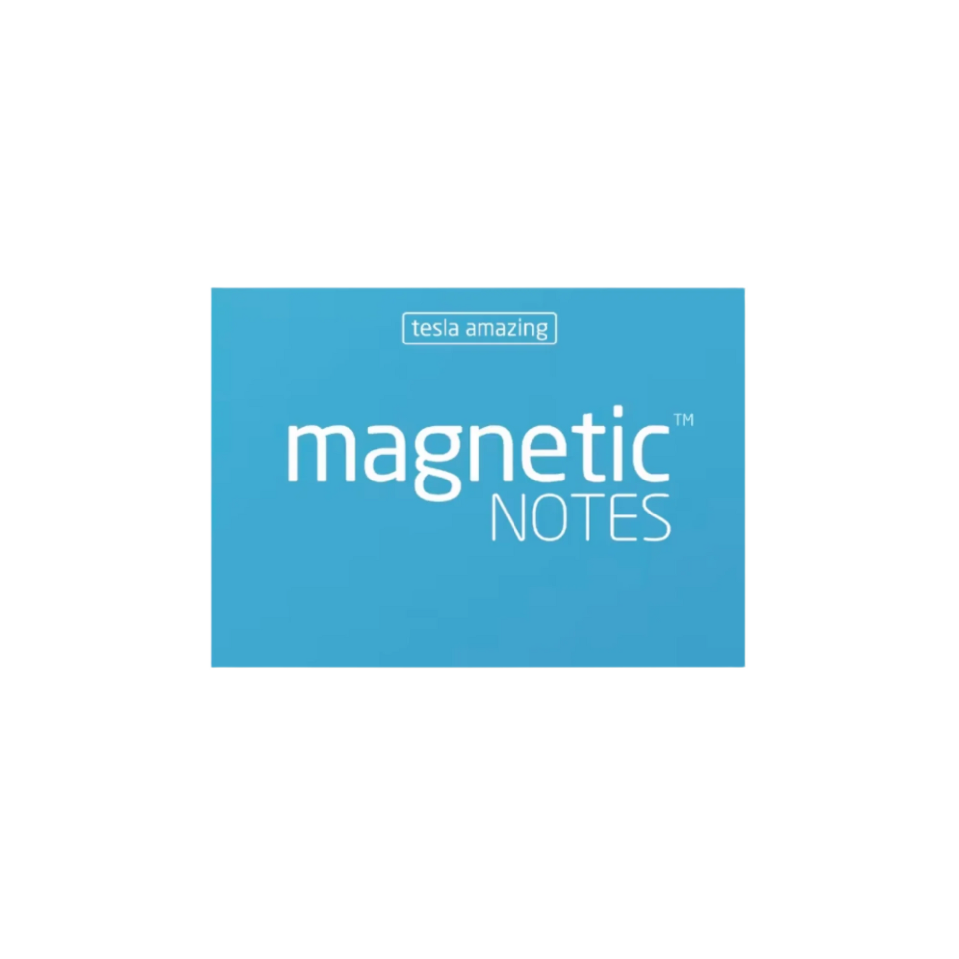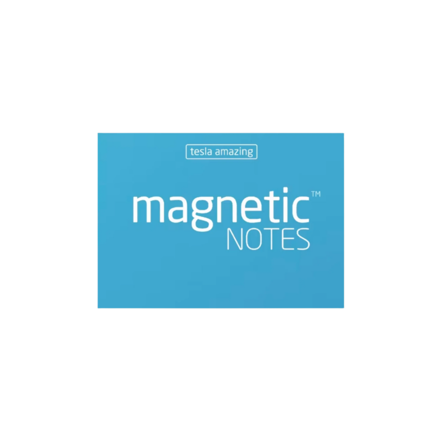 Introducing the small magnetic notes in aqua blue. Inspired by the great inventor Nikola Tesla's experiments with static electricity, these reinvented sticky notes will stick to almost any smooth surface. How? They do it through the power of a unique patented technology called statically charged polypropylene film. Better yet, they leave behind no residue and can be moved and replaced. The writable side is reusable and wipeable, too.