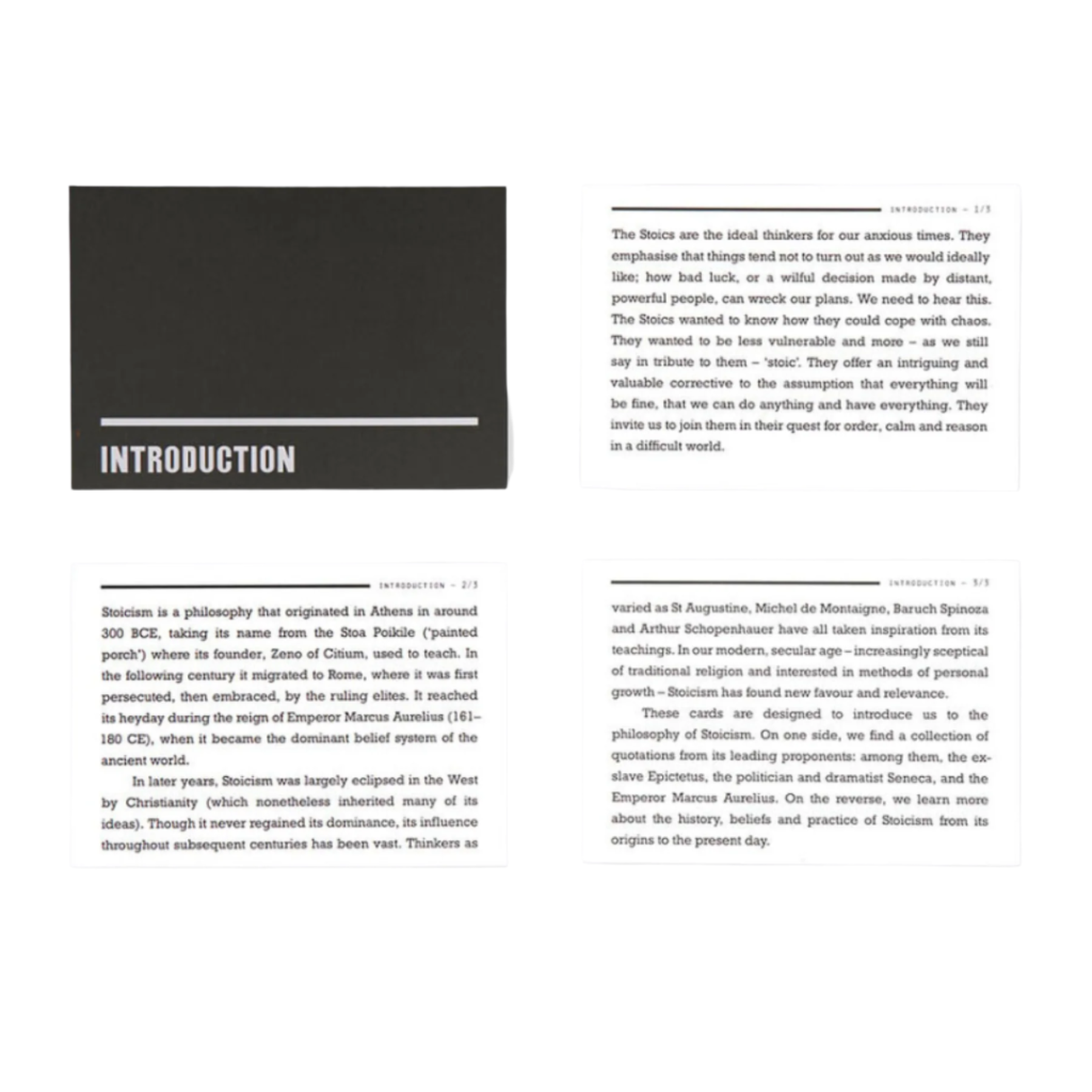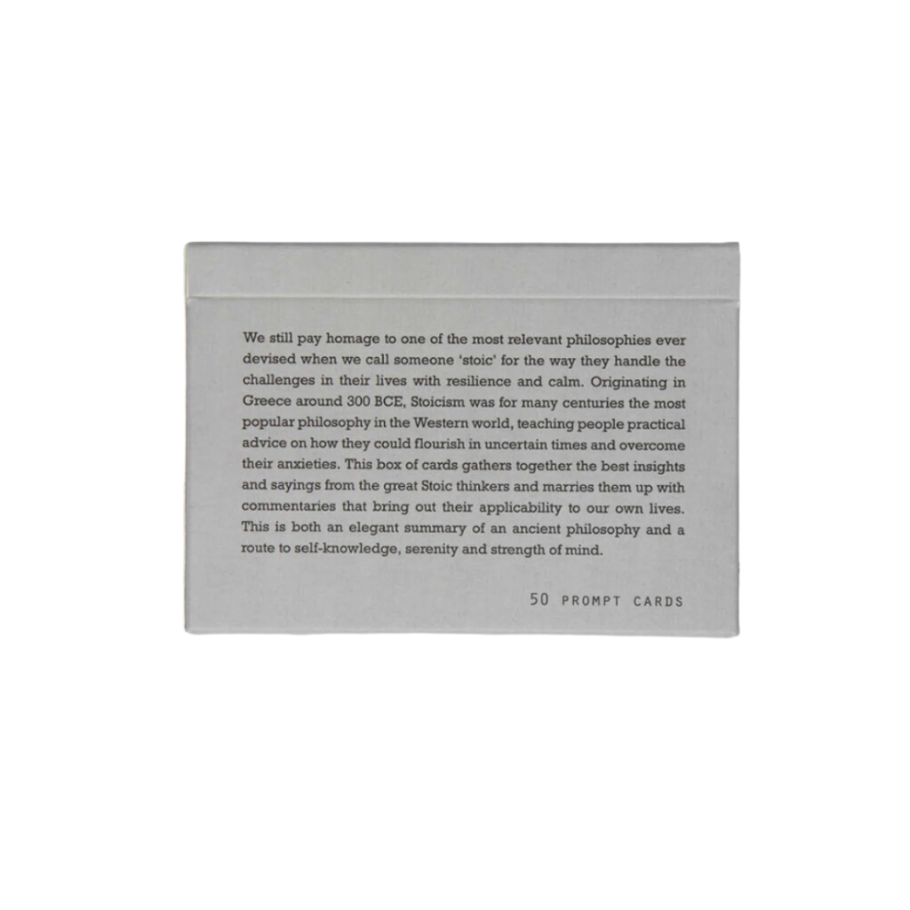 This box of cards gathers together the best insights and sayings from the great Stoic thinkers and marries them up with commentaries that bring out their applicability to our own lives. This is both an elegant summary of ancient philosophy and a route to self-knowledge, serenity and strength of mind.