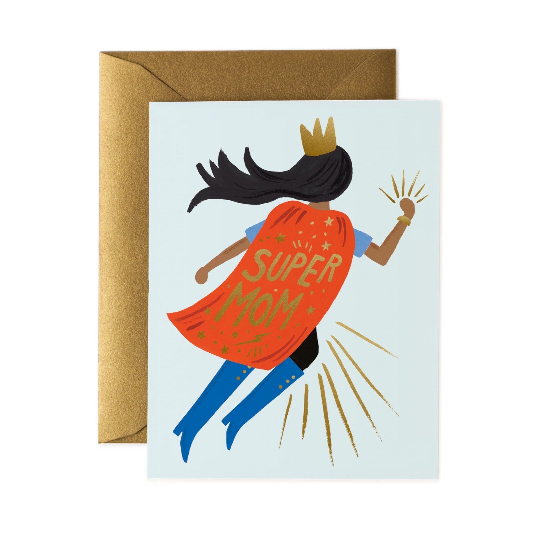 Greetings card printed on natural white cover paper with gold foil lettering.