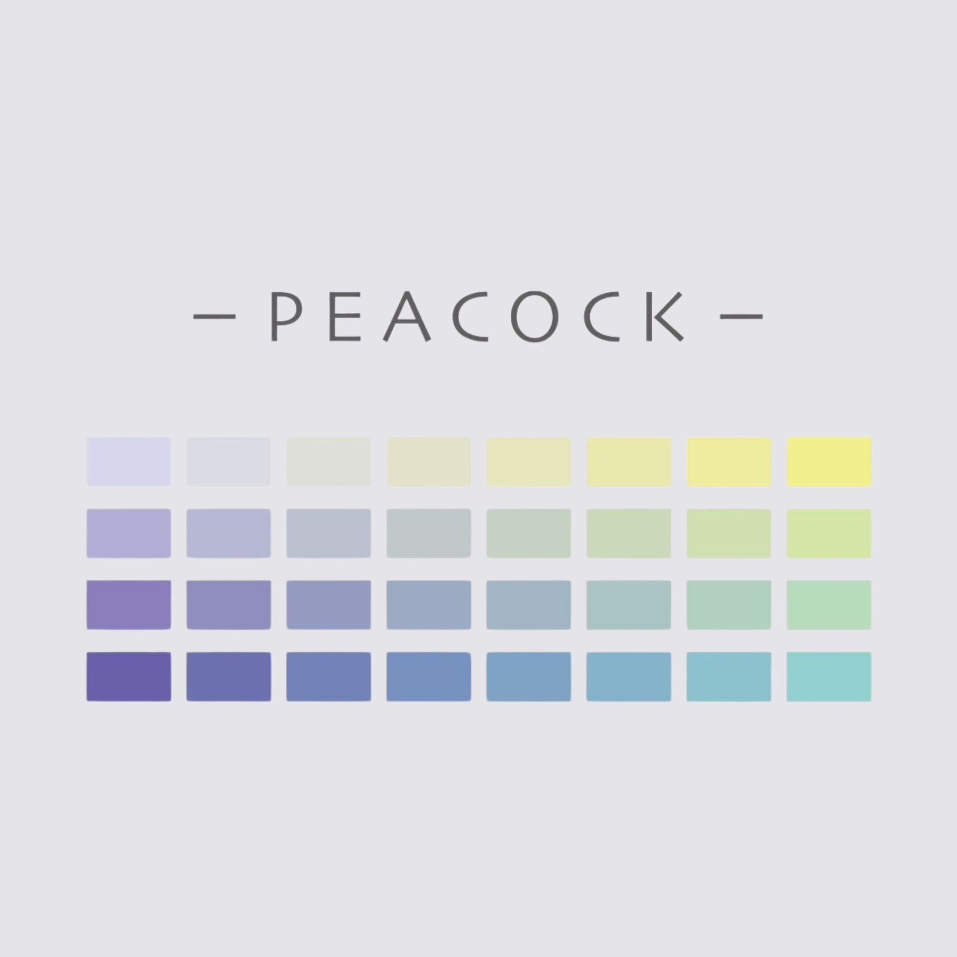 Inspired by the design of a paint chip colour fan, this peacock collection features a stunning array of colourful blue, green and yellow translucent stickers.