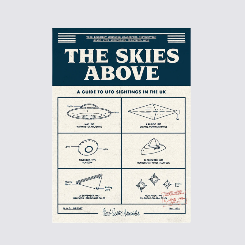 Written and researched by the hosts of That UFO Podcast, The Skies Above is a lively, fact-based exploration of one of the planet’s last great mysteries. Design: Beth Mathews.