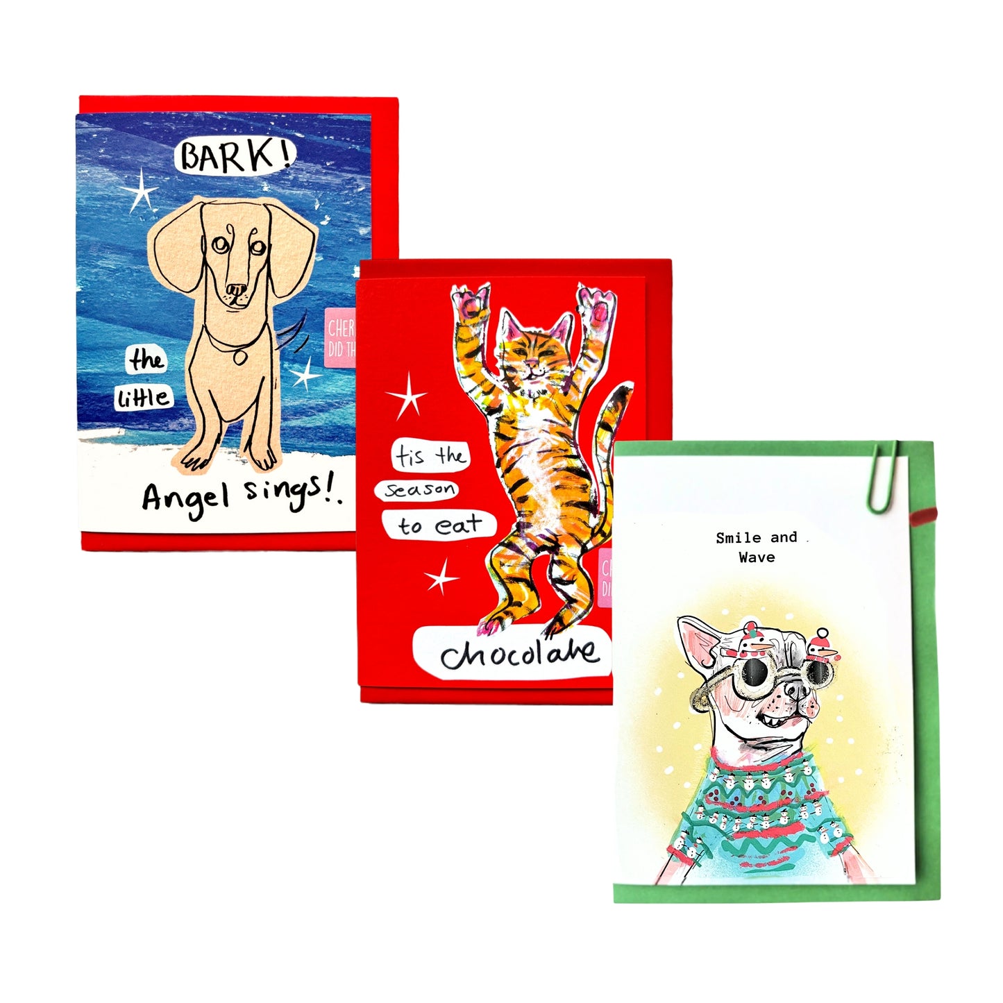 Folded greetings card with matching envelope. All designs are made in the UK but they begin life in Cherie's loft studio. These products run for a limited time. When they’re gone they’re gone, o waste.