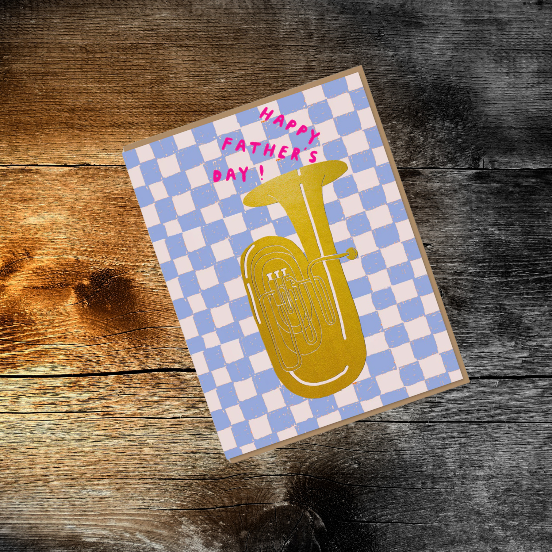 A fun and unique greeting card for dads who love jazz, brass bands, or just a bit of fanfare.