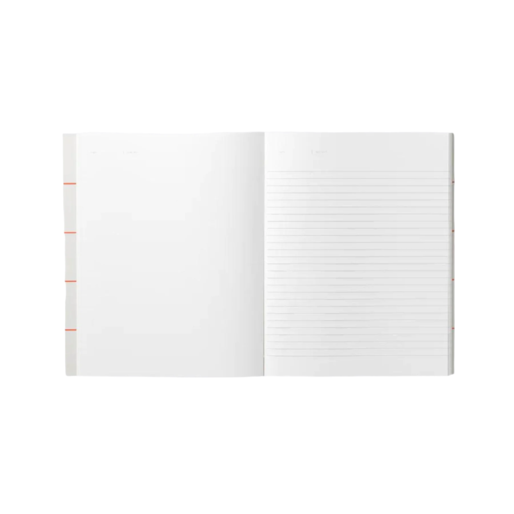 The open notebook presents a plain left page, with a ruled right-hand side, leaving space for sketches, mindmaps, notes and doodles.