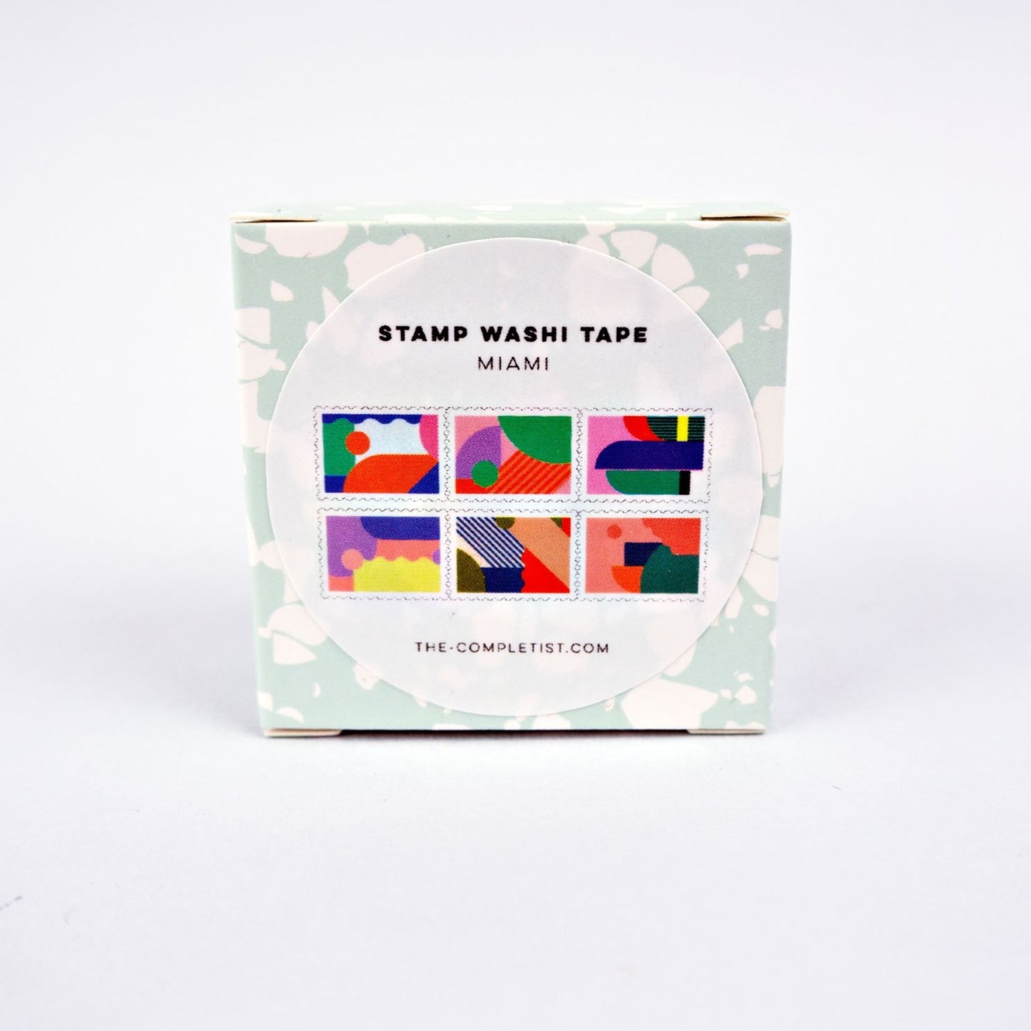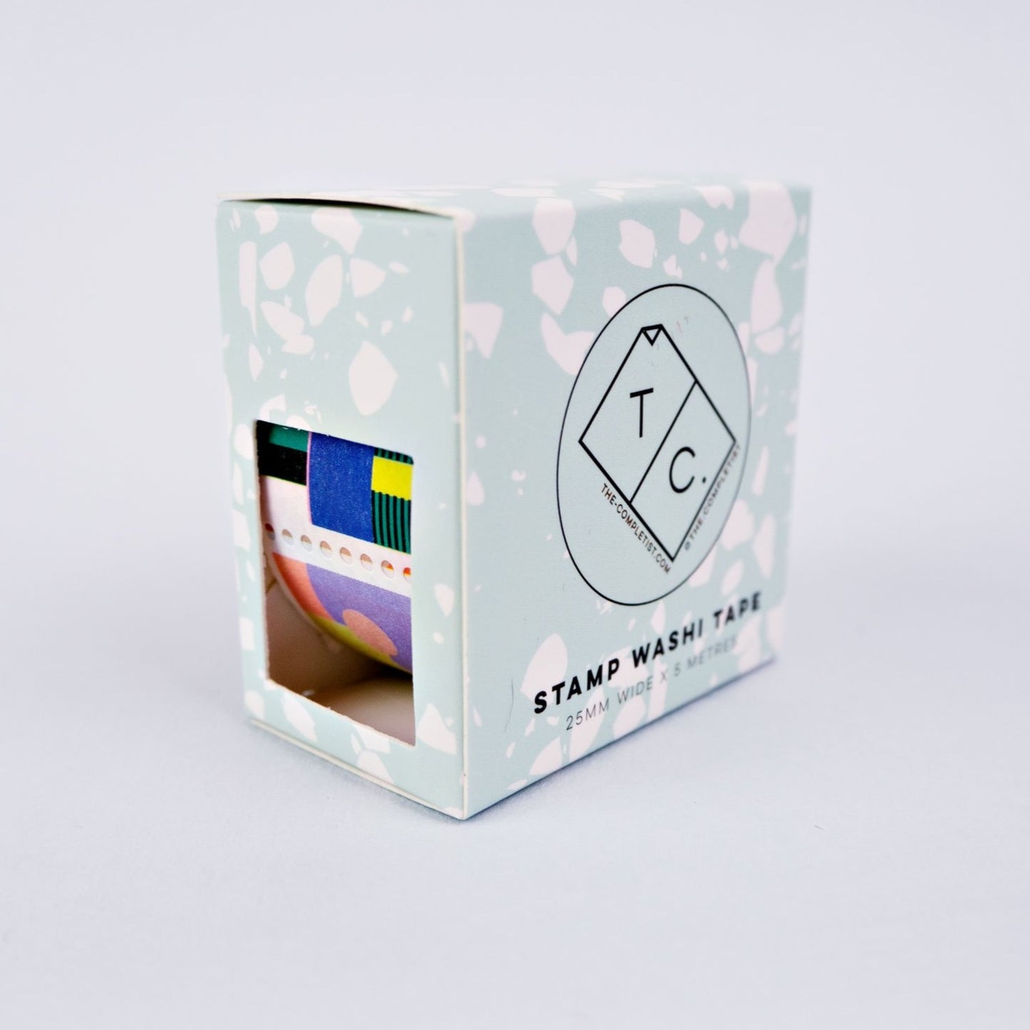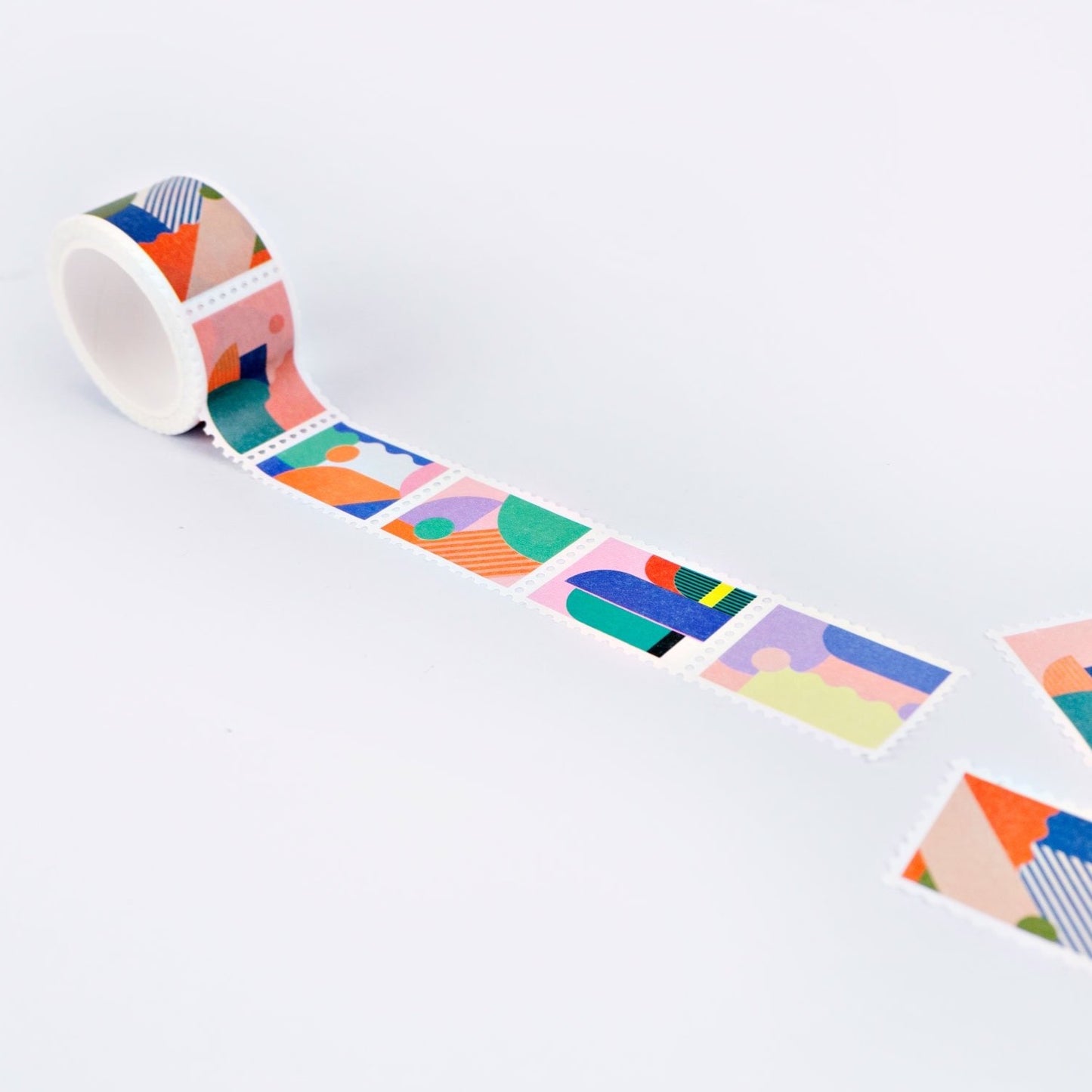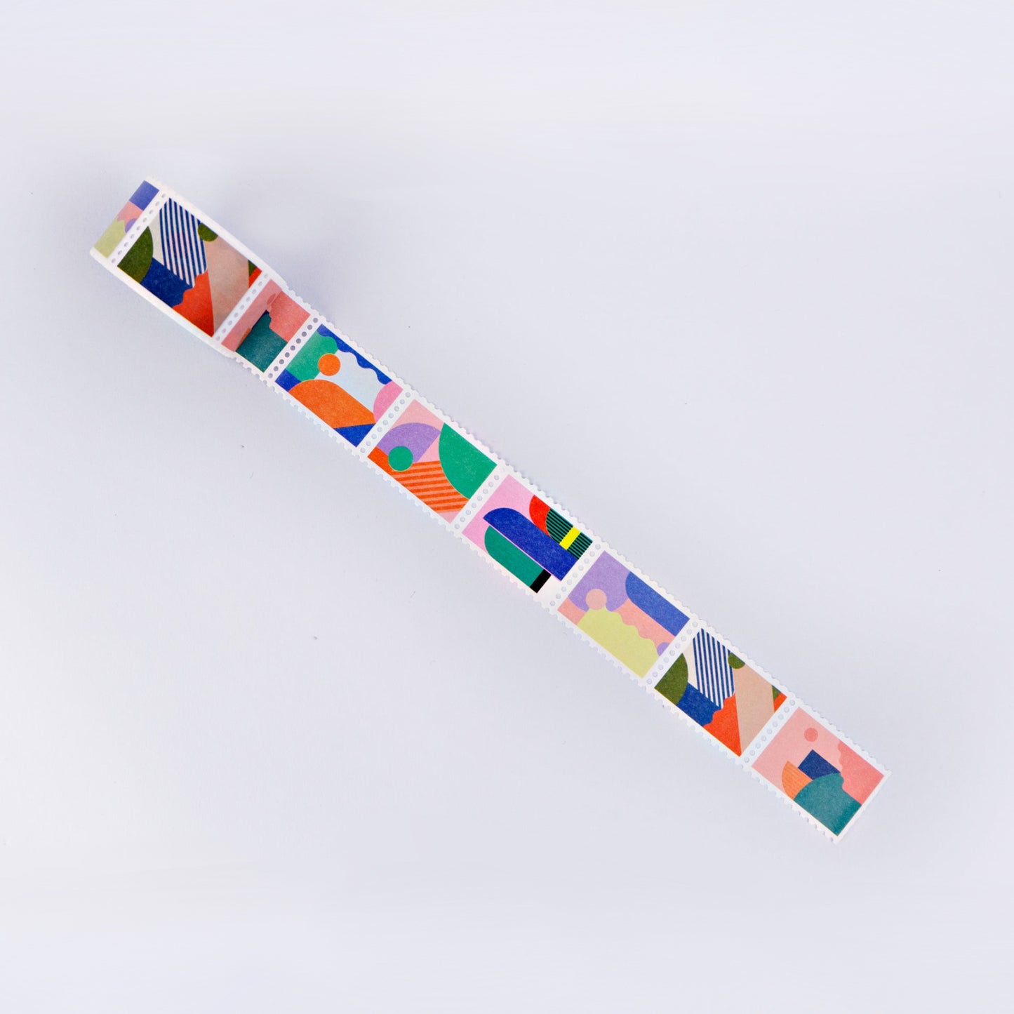 Beautifully packed in a (plastic free!) cardboard box, the tape is 25mm wide, 5 meters long and is perforated so you can tear each stamp off.