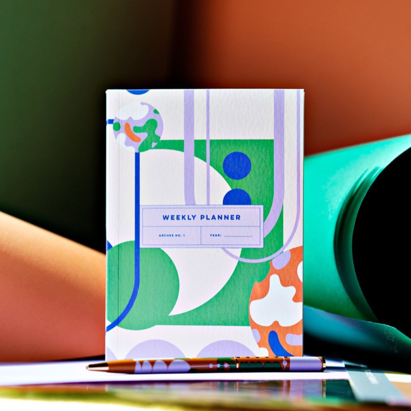 Introducing Arches. The perfect pocket planner for those who need to get organised - the A6 weekly planner with a minimal abstract print and contrasting inside cover. This undated planner is perfect for those who want to start, stop, or skip a week without feeling guilty!