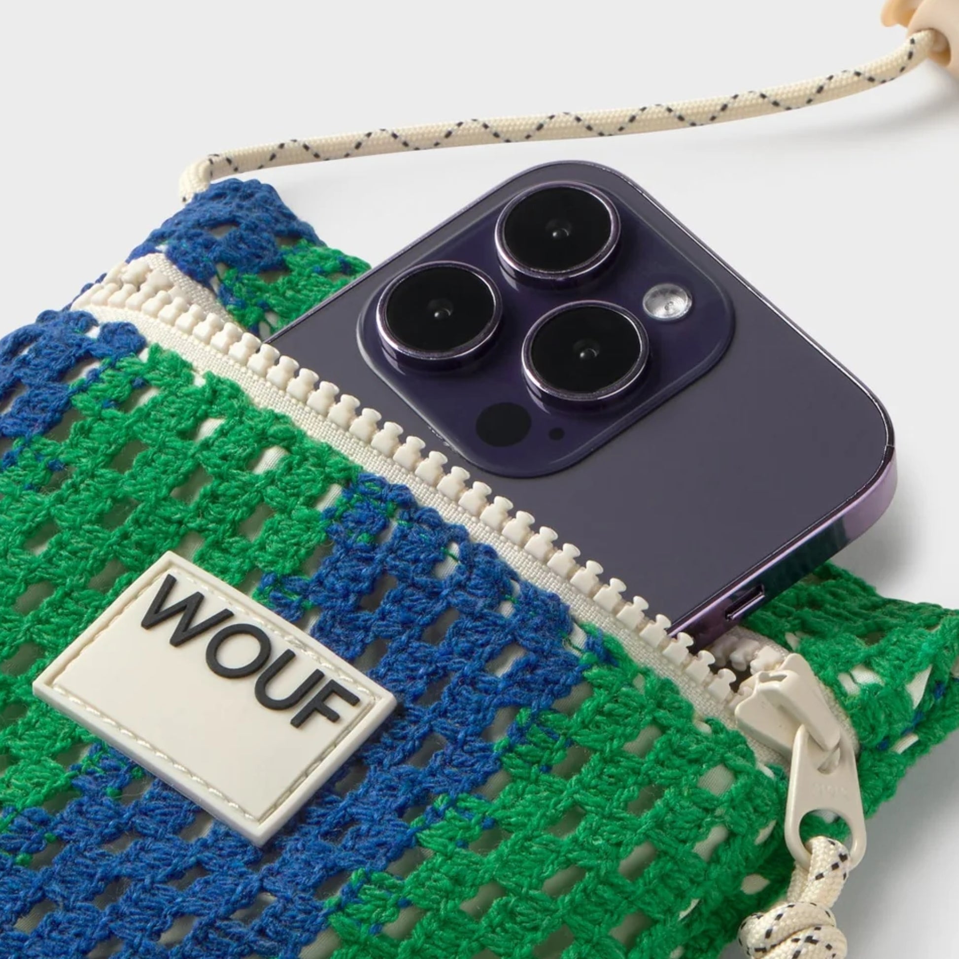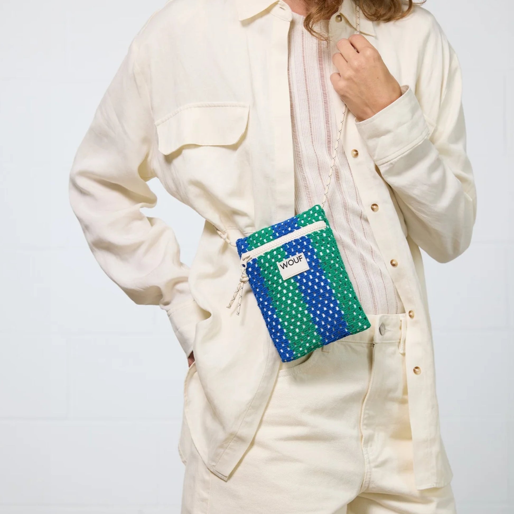 The Mistral phone bag brings a touch of Mediterranean ease to your everyday. Designed with blue and green striped crochet, it’s designed to keep your phone and small essentials secure while you stay hands-free. The adjustable cord means you can wear it crossbody, over the shoulder or around your neck. A practical lightweight, stylish companion for summer outings, festivals and city strolls.