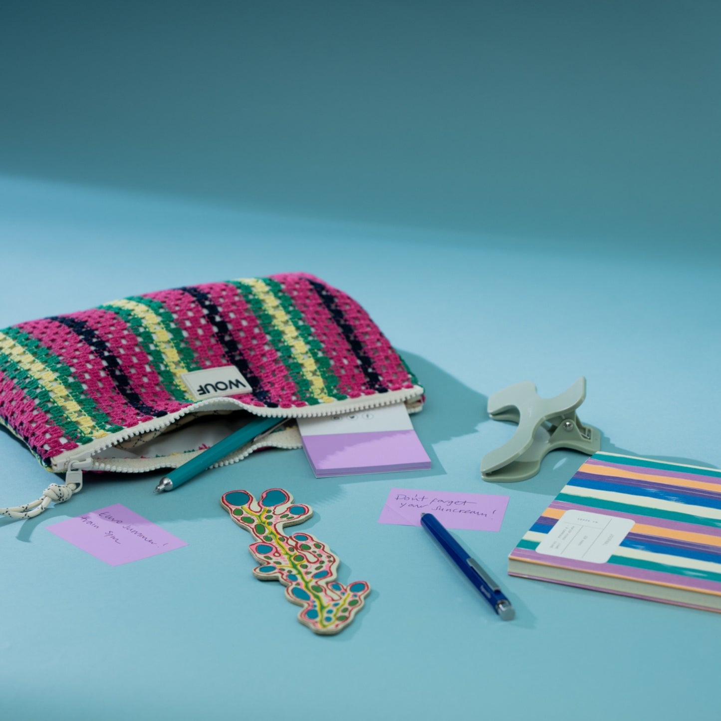 This striped crochet pouch is your go-to for effortless organisation. Whether you're storing makeup, stationery, travel essentials or tech accessories, its single compartment keeps things simple. The lightweight design makes it easy to slip into your tote, while the Mediterranean-inspired stripes add a stylish touch. A practical companion for work, holidays or daily life.
