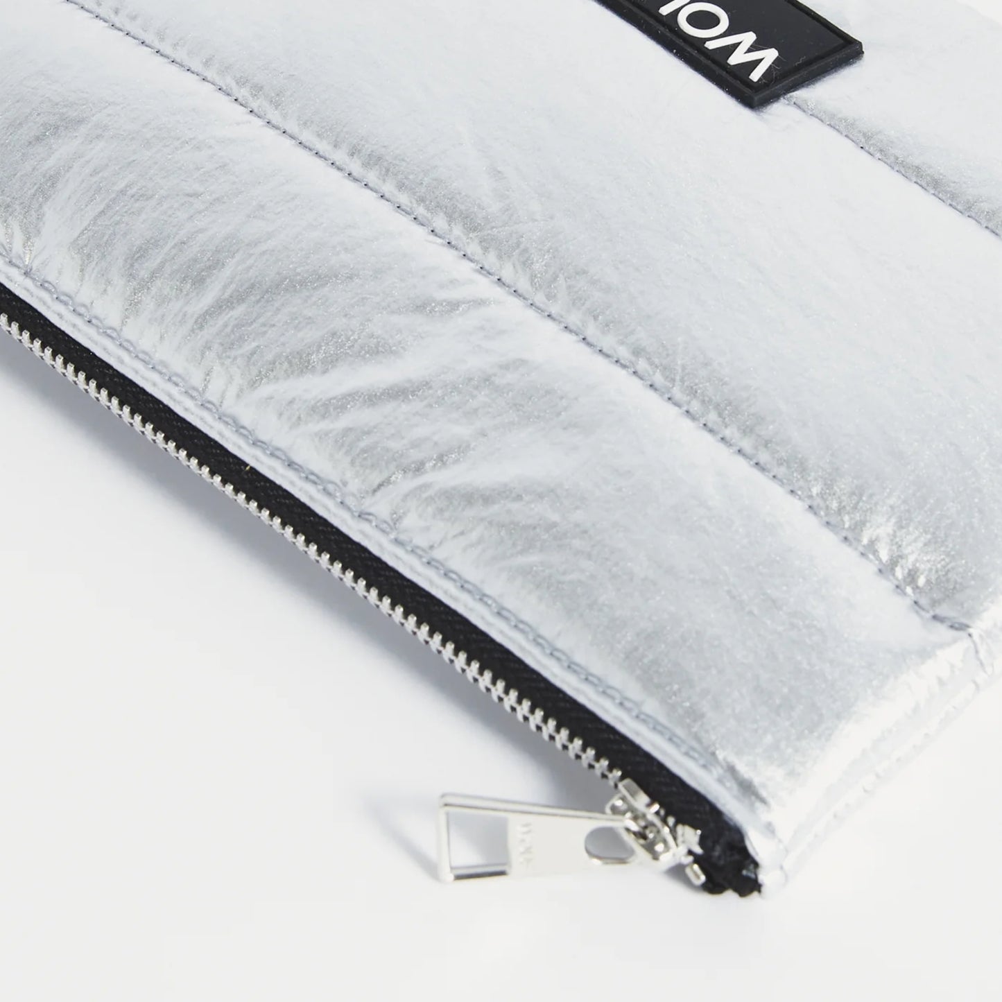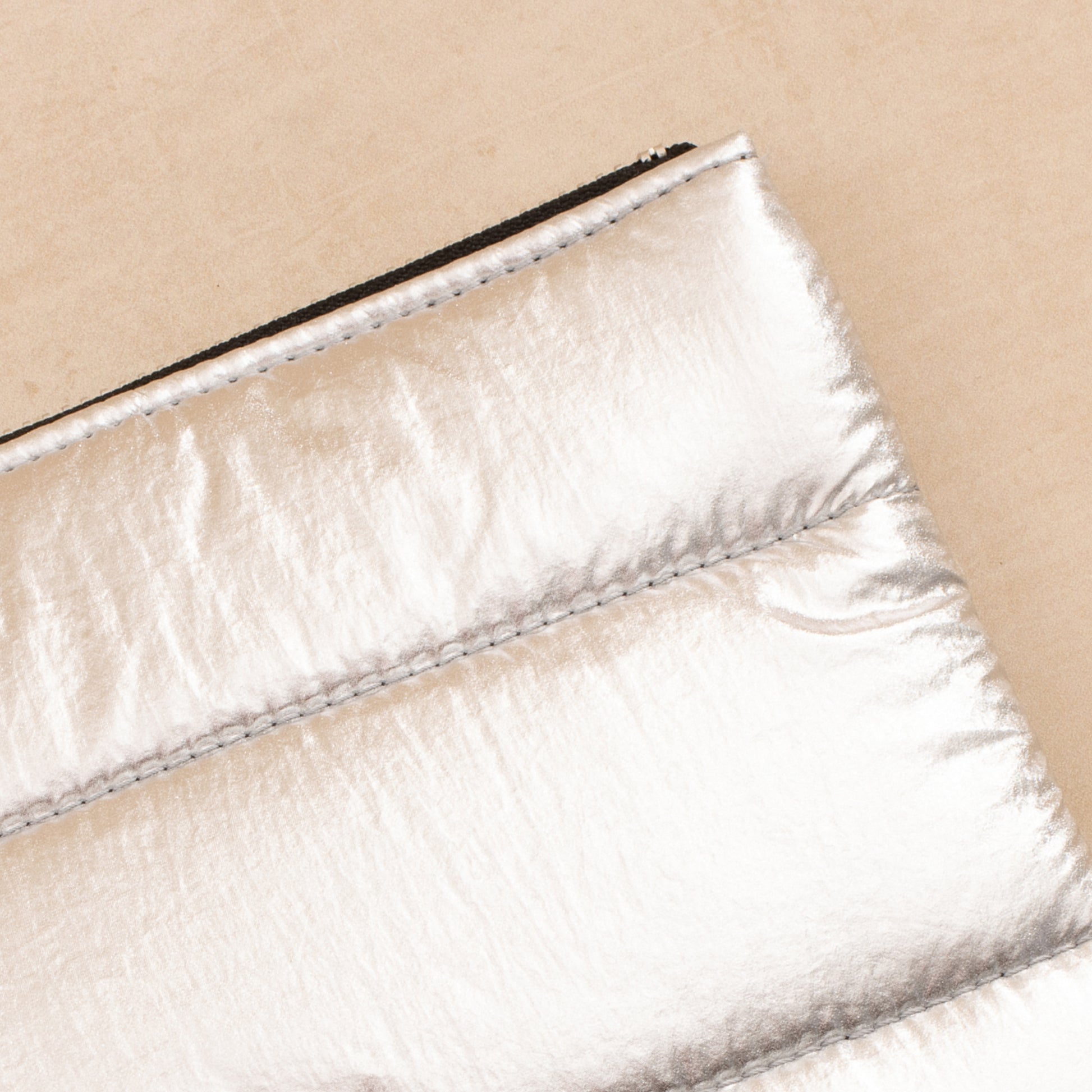 Introducing the Silver Glossy pouch from our Quilted collection, the most urban-inspired line yet. Made from 100% recycled fabric sourced from post-consumer plastic bottles, this pouch features a sleek water-repellent finish. With a single main zipped compartment, it’s perfect for keeping keys, passports, and other small essentials neatly organised while you're on the move.