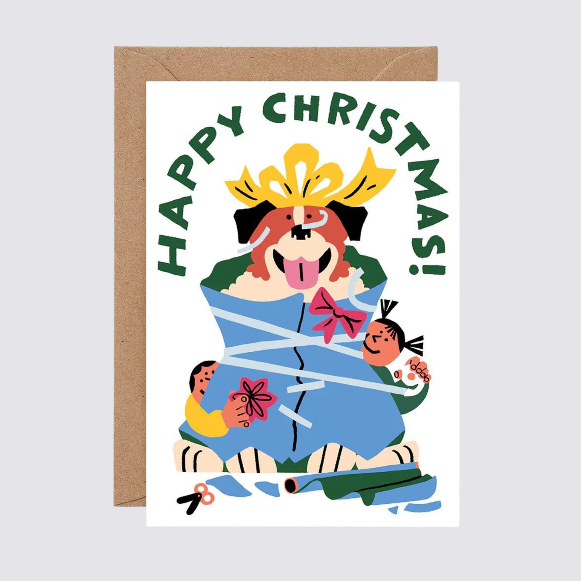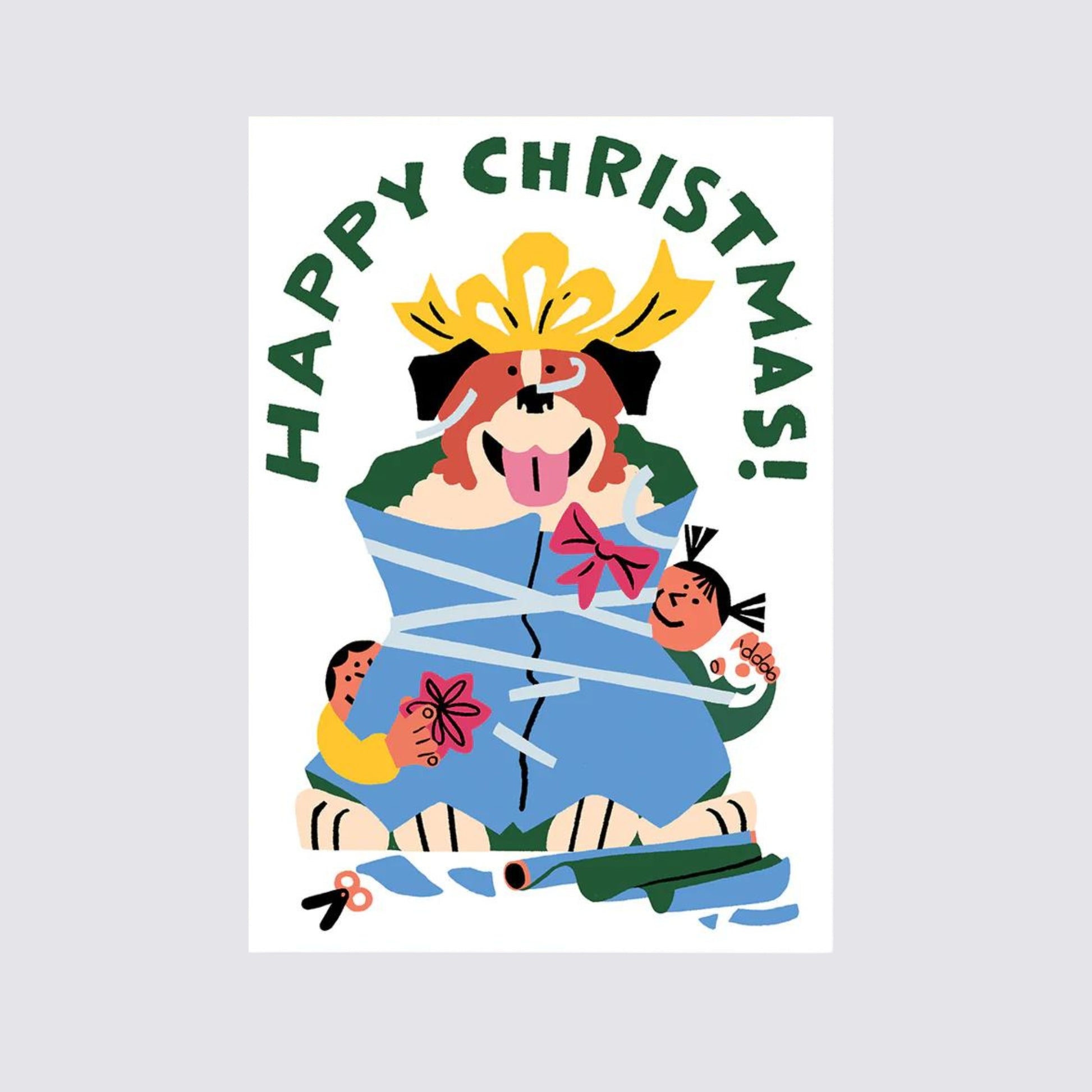 Festive fun and a bit of Christmas chaos. This mischievous greetings card is designed in a colourful Christmassy style and is finished with embossed detailing.